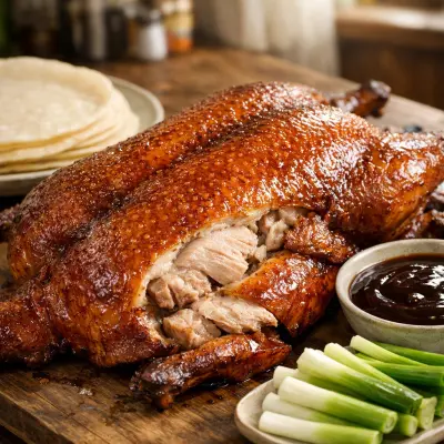 Crispy, succulent Peking duck is a dish that will wow your guests, especially when served with traditional pancakes, hoisin sauce, and scallions. A true banquet classic that never fails to impress.