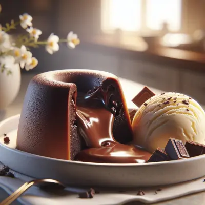 End your meal on a high note with a molten chocolate fondant, a dessert that boasts a gooey, rich center that oozes out when you cut into it, served with a scoop of vanilla ice cream.