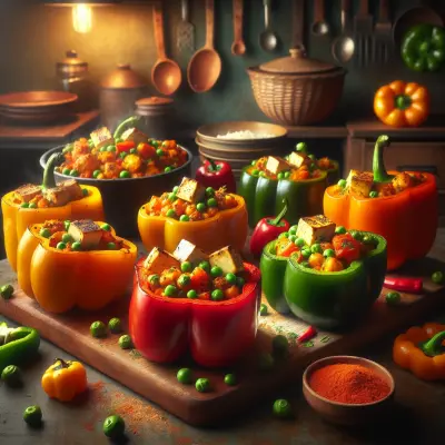 These vibrant bell peppers are filled with a delicious mixture of quinoa, black beans, corn, and spices, offering a healthy and colorful option for your dinner table.