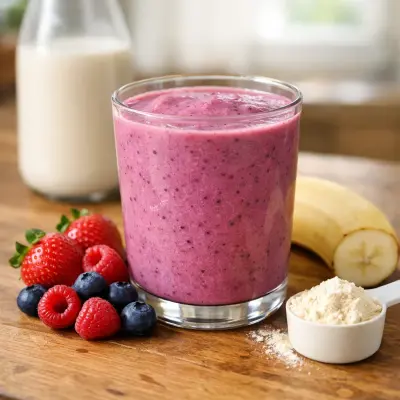 Blend together your choice of berries, a banana, a scoop of protein powder, and almond milk for a quick and nutritious smoothie thatβs great for muscle recovery.
