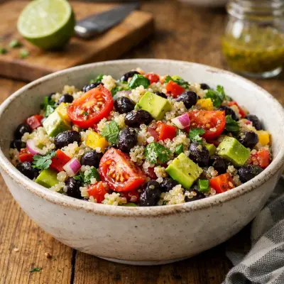 Packed with protein and fiber, this salad is a perfect post-workout meal. Toss quinoa with black beans, cherry tomatoes, avocado, and a zesty lime vinaigrette for a refreshing treat.