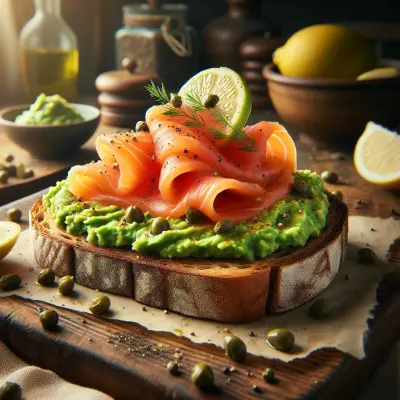 Upgrade your avocado toast with a slice of silky smoked salmon, a sprinkle of capers, and a dash of lemon juice. It's a savory delight that's both simple and sophisticated.