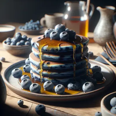Fluffy pancakes bursting with fresh blueberries and served with a drizzle of maple syrup. These pancakes are sure to make your brunch both sweet and memorable.