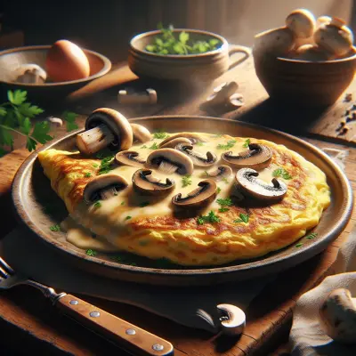 A savory omelet filled with sautéed mushrooms and Swiss cheese, this dish is perfect for those who prefer a hearty, savory start to their day. It's quick to prepare and delightfully satisfying.