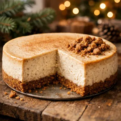 End your meal on a sweet note with a gingerbread spiced cheesecake. The creamy filling is infused with warm spices like ginger, cinnamon, and nutmeg, all resting on a crunchy graham cracker crust, perfect for the holiday season.