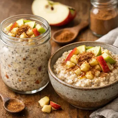 Mix rolled oats with almond milk, diced apples, and a sprinkle of cinnamon for an easy overnight oats recipe. Perfectly sweetened with natural sugars, this dish requires no morning prep and tastes like apple pie in a bowl.
