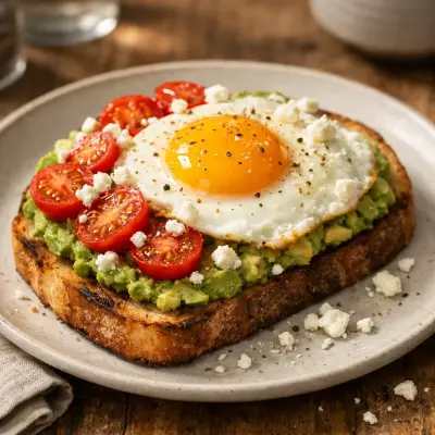 Transform a simple avocado toast by adding a sunny-side-up egg, cherry tomatoes, and a sprinkle of feta cheese. This vibrant and nutritious breakfast is packed with healthy fats and protein to keep you energized all morning.