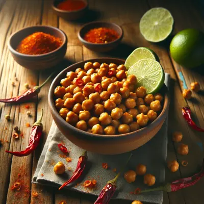 Roasted chickpeas seasoned with chili powder and lime make for a crunchy and spicy snack. They're an excellent high-protein alternative to traditional game day munchies.