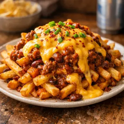Top crispy French fries with hearty chili and a generous drizzle of cheese sauce for an indulgent tailgate snack. This shareable dish is sure to be a fan favorite.