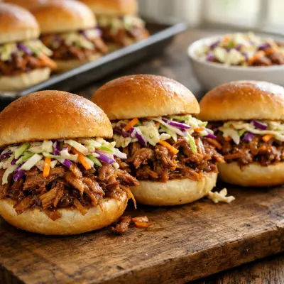 Slow-cooked and seasoned to perfection, pulled pork sliders are the ultimate handheld treat. Top with coleslaw for crunch and serve on mini buns for an easy, mess-free option.