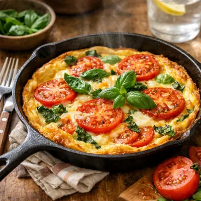This tomato and basil frittata brings a taste of the Mediterranean to your breakfast table. It's light, fluffy, and filled with fresh flavors to brighten your morning.