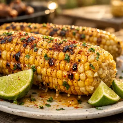 Grilled corn is slathered with a spicy chili-lime butter for a zesty twist on a summer classic. It's a must-try side dish that complements any BBQ spread.