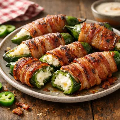 Stuffed with cream cheese and wrapped in bacon, these jalapeΓ±o poppers are grilled until the bacon is crispy and the cheese is melted. They offer a delightful balance of heat and creaminess.