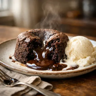 Dive into a rich, molten center with this classic chocolate lava cake. Perfectly gooey and served warm, it’s a chocoholic’s dream come true. Pair it with a scoop of vanilla ice cream for an extra indulgence.