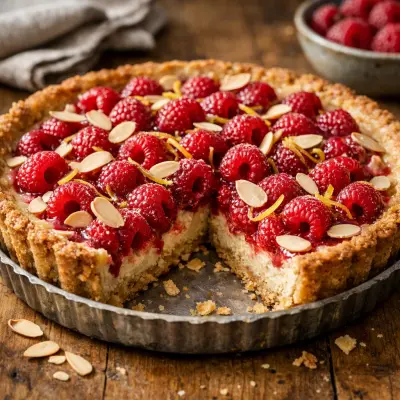 This tart combines a buttery almond crust with a sweet and tart raspberry filling. Topped with almond slivers, it’s a crunchy and fruity delight that’s perfect for any dessert table.