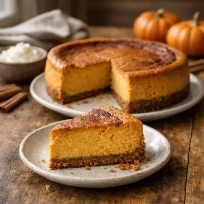 A delightful twist on the classic dessert, pumpkin cheesecake combines the smoothness of cream cheese with the rich taste of pumpkin and spices. It's perfect for holiday gatherings or a special treat.